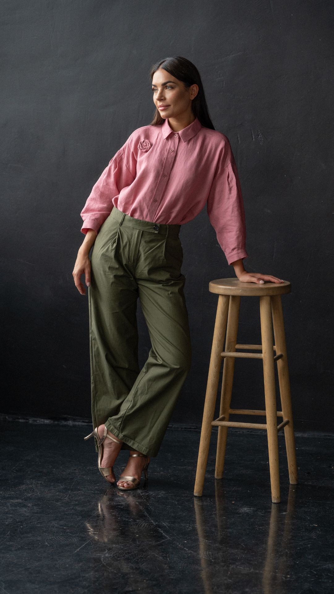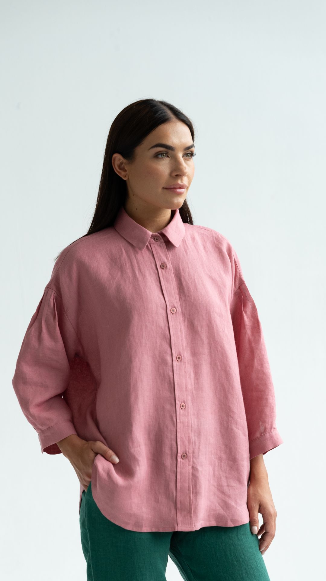 Koszula oversize z opuszczanym ramieniem typu kimono to idealny wybór na każdą okazję. Możesz ją nosić zarówno na co dzień, jak i na wieczorne wyjścia. Koszula jest wykonana z wysokiej jakości polskiego lnu, który jest przewiewny i zapewni Ci komfort każdego dnia. Szare przeszycia na rękawie nadają koszuli oryginalny i stylowy wygląd. Koszula zapinana jest na 6 guzików, a rękaw ma długość 7/8 z zakładkami.