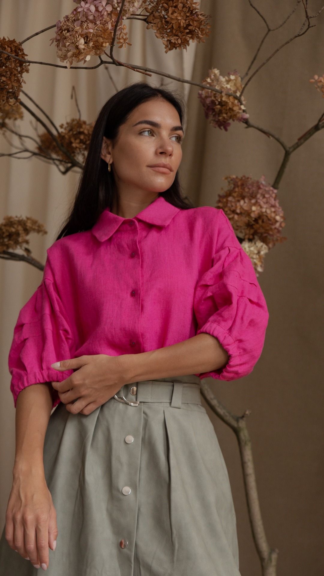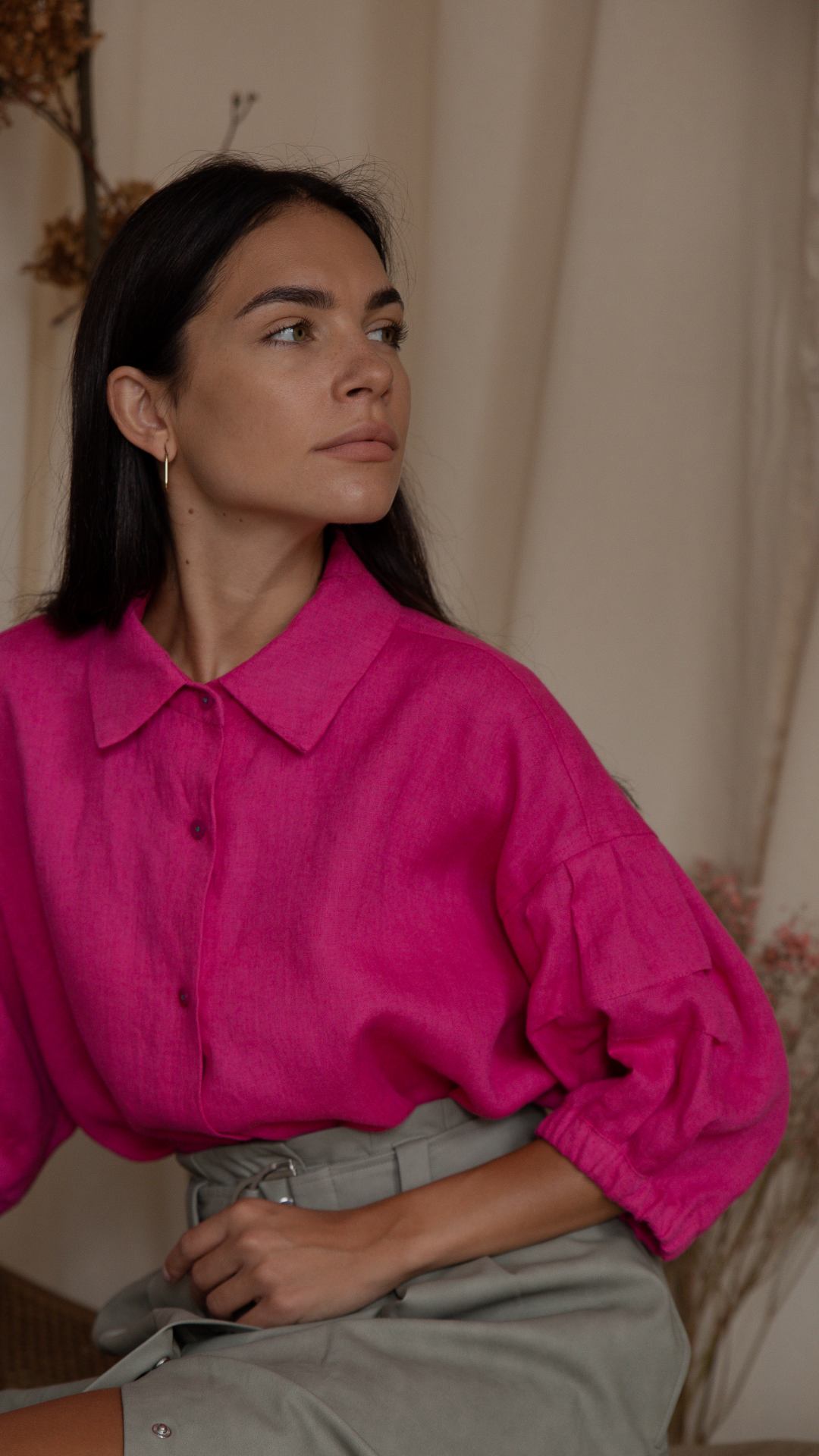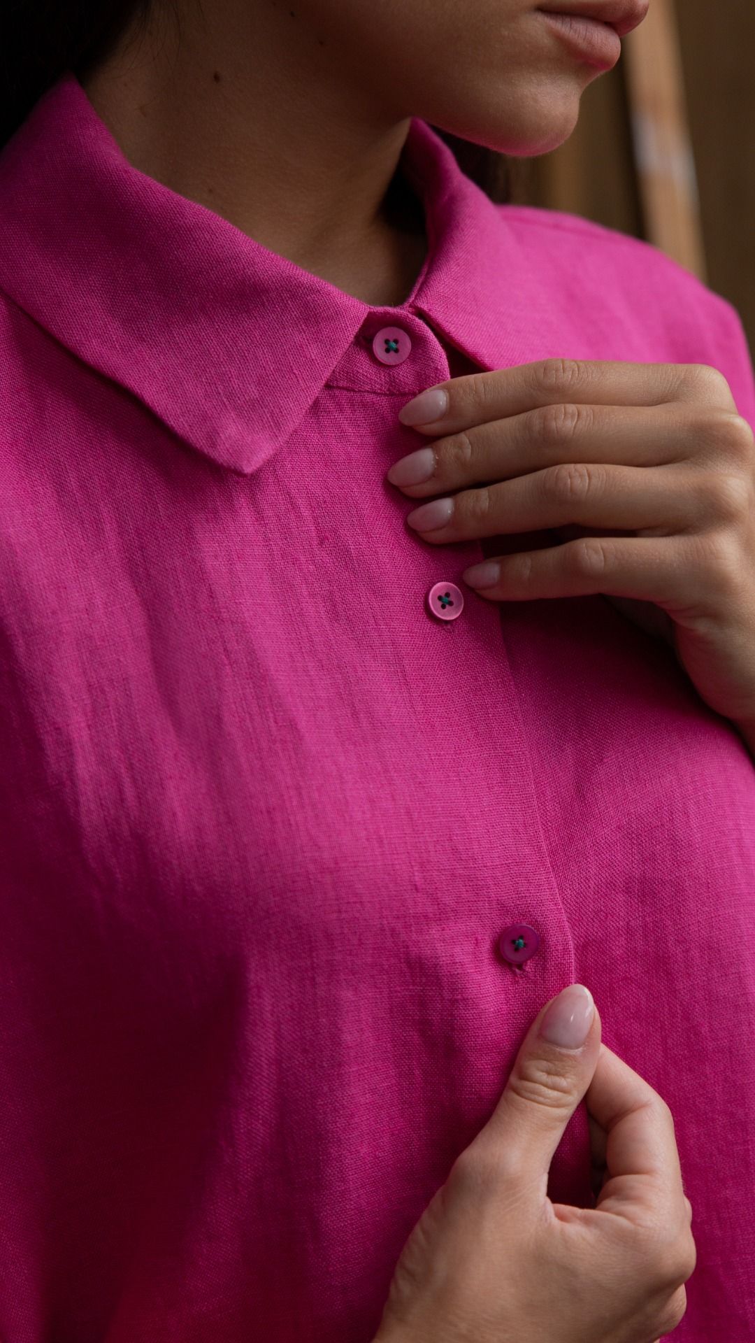 Koszula oversize typu kimono z opuszczanym ramieniem w amarantowym kolorze to idealny wybór dla kobiet, które cenią modę i komfort. Koszula jest wykonana z wysokiej jakości polskiego lnu, który jest przewiewny i zapewnia komfort każdego dnia. Koszula ma luźny fason, dzięki czemu jest wygodna w noszeniu i idealnie nadaje się na co dzień. Koszula ma opuszczone ramiona, które dodają jej kobiecości, a oryginalny krótki rękaw z zakładkami tworzą delikatne bufki. Koszula jest zapinana na 6 guzików i ma mankiet szerokości 2 cm, od wewnątrz wykończony gumką. Koszula jest dostępna w rozmiarach S i M.